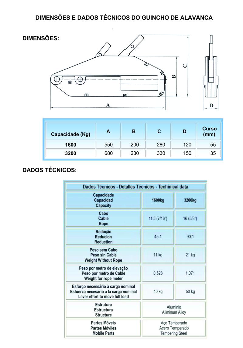 Capacidade: 1.600 e 3.200 kg Descrição: Fabricado com carcaça de alumínio de alta resistência coquilhado, sendo indicado para arraste de cargas, mesmo a longa distâncias; montagens industriais e de estrutura.