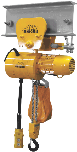 Talha elétrica acoplada por carro manual Capacidades 200 e 400 kg Dimensões e características construtivas