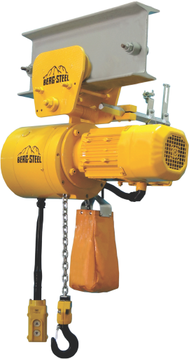 Talha elétrica acoplada por trole elétrico Capacidades 500 e 1000 kg. Dimensões e características construtivas.