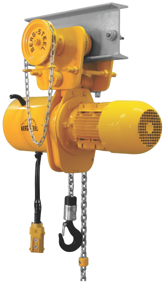 Talha elétrica acoplada ao trole mecânico, sendo acionada por uma corrente Capacidades 1.000, 2.000, 3.000 E 4.000 kg Dimensões e características construtivas